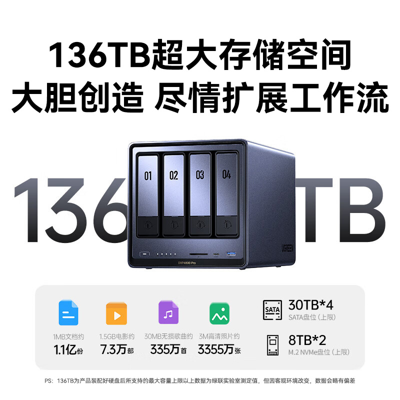 绿联私有云DXP4800 Pro 8G内存 空盘版 四盘位NAS网络存储 个人云硬盘 AI家庭服务器 万兆网口 适用iPhone17