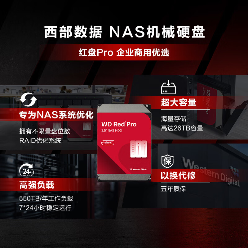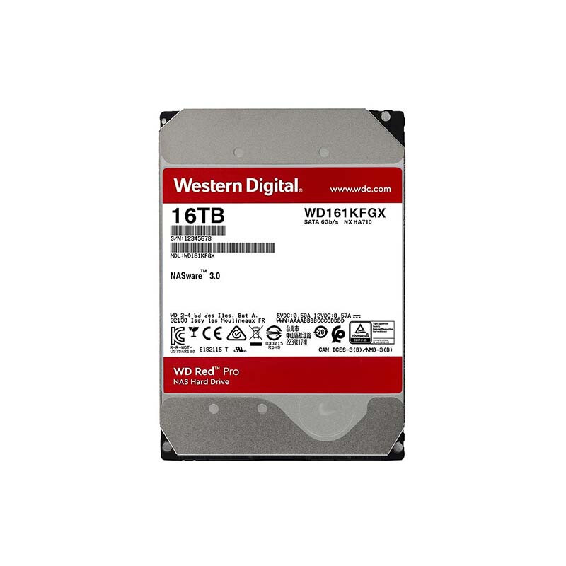 西部数据(WD)NAS机械硬盘 WD Red Pro西数红盘 16TB 7200转512MB SATA CMR垂直 NAS专用硬盘 3.5英寸 WD161KFGX