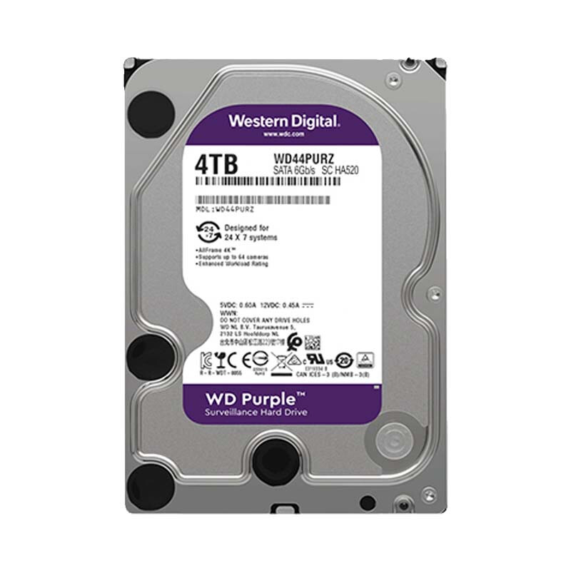 西部数据(WD)4TB 监控级机械硬盘 WD Purple 西数紫盘 SATA 128MB CMR垂直 安防存储 3.5英寸 WD44PURZ
