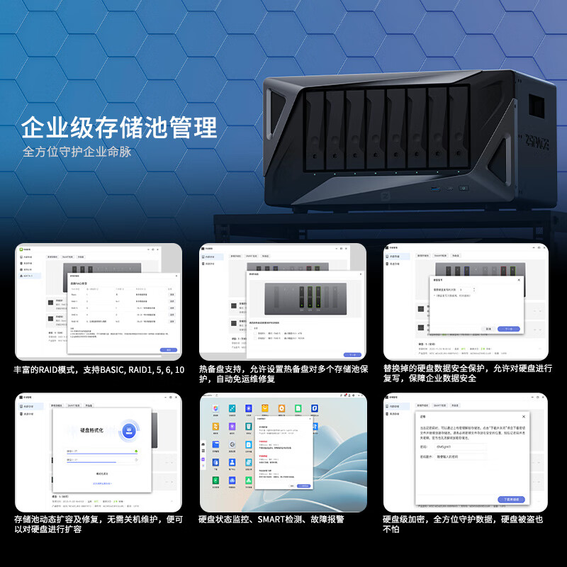 电源与备份:标配双冗余电源,内置UPS模组;支持云端备份、多设备数据灾备等多种备份机制。