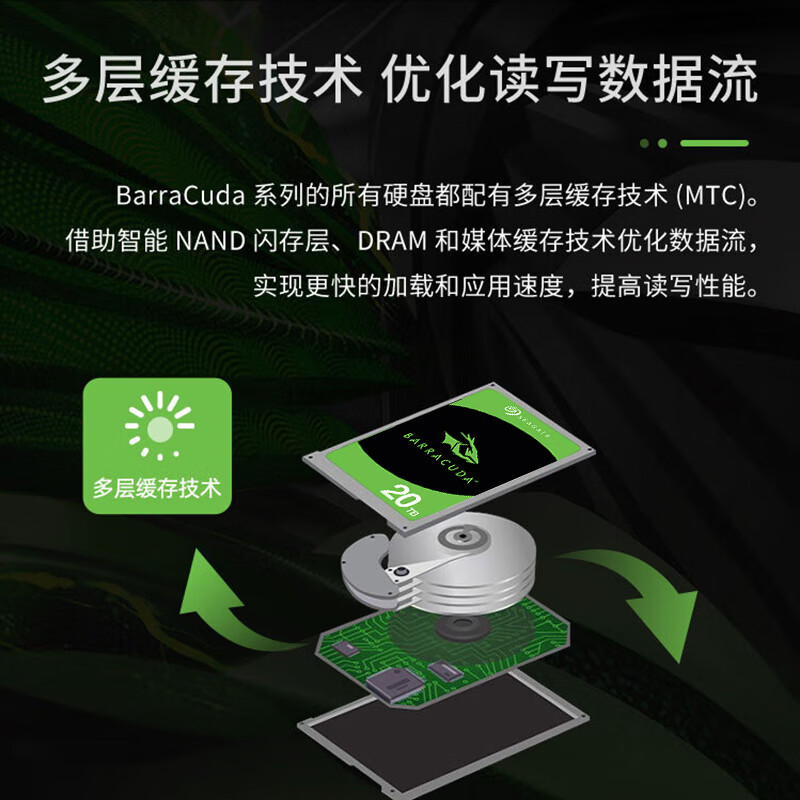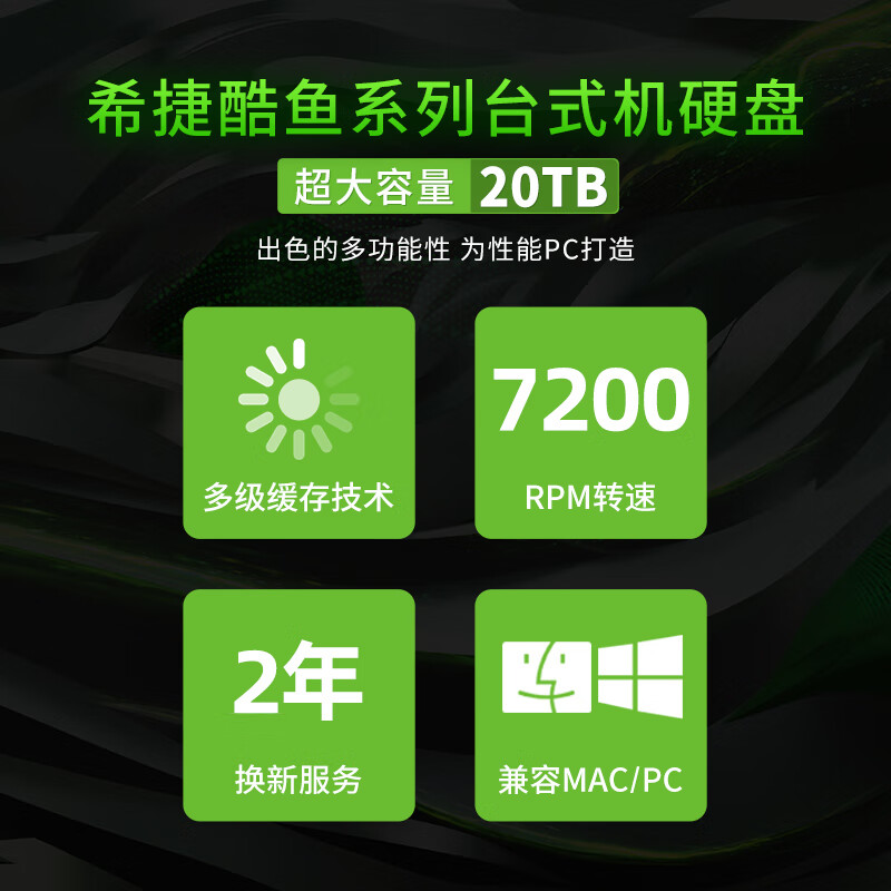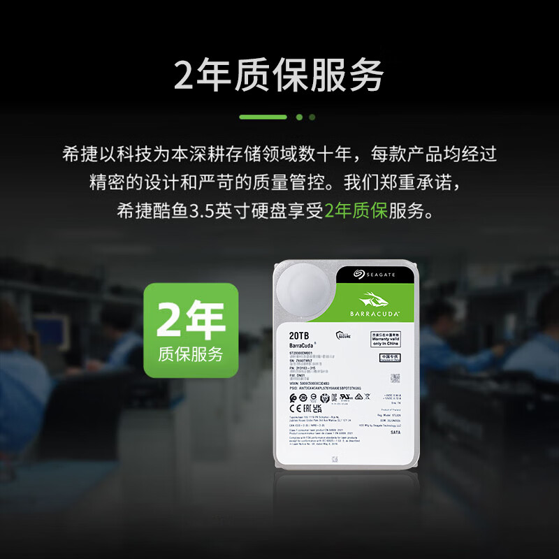 希捷(SEAGATE)台式机硬盘 20TB 7200转 512MB 机械硬盘 SATA 希捷酷鱼系列 电脑硬盘 3.5英寸 ST20000DM001