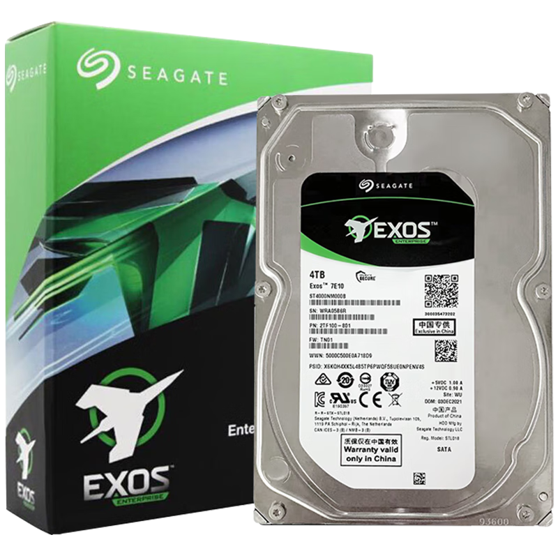 希捷(SEAGATE)企业级硬盘 4TB 256MB 7200RPM CMR垂直 SATA 希捷银河Exos 7E10系列 服务器硬盘ST4000NM000B