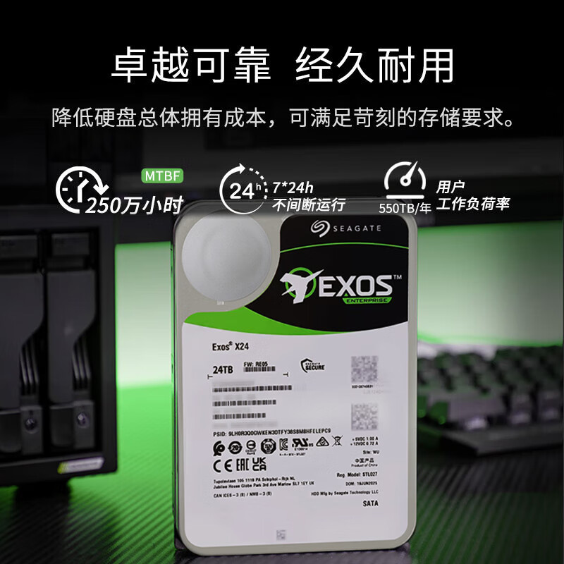希捷(SEAGATE)企业级硬盘 24TB 512MB 7200RPM CMR垂直 SATA X24系列 ST24000NM002H