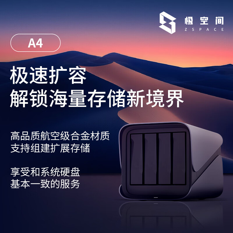 极空间私有云 新A4硬盘盒磁盘阵列四盘位eSATA Type-C 网络存储服务器扩充设备(无内置硬盘)
