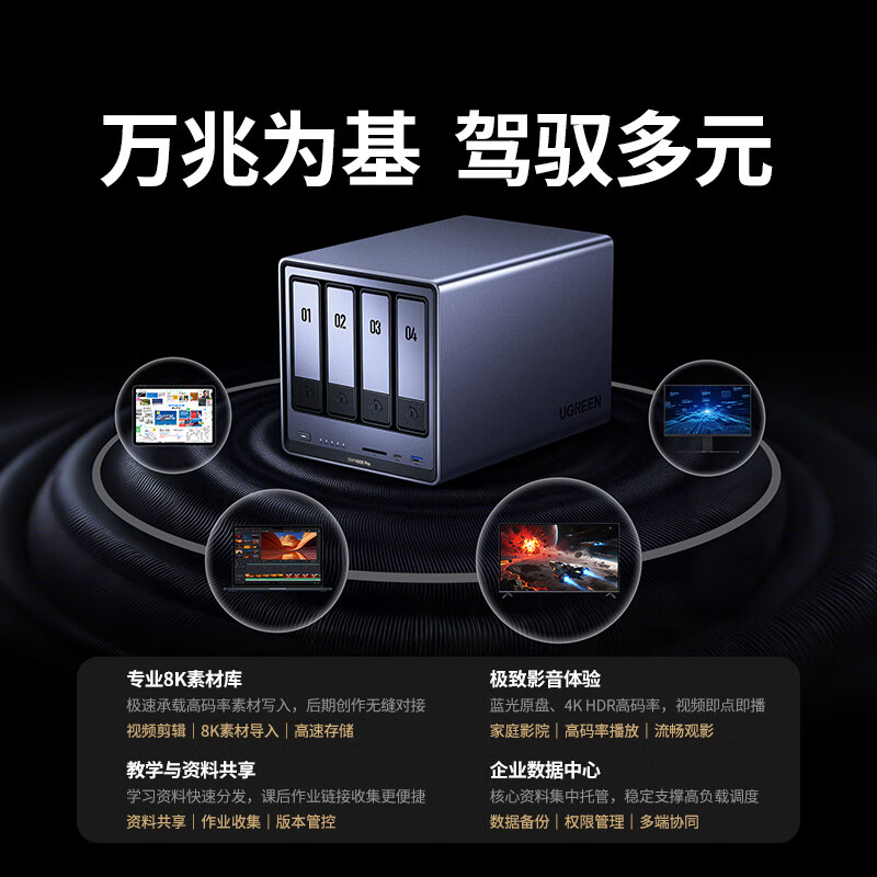绿联私有云DXP4800 Pro 8G内存 空盘版 四盘位NAS网络存储 个人云硬盘 AI家庭服务器 万兆网口 适用iPhone17