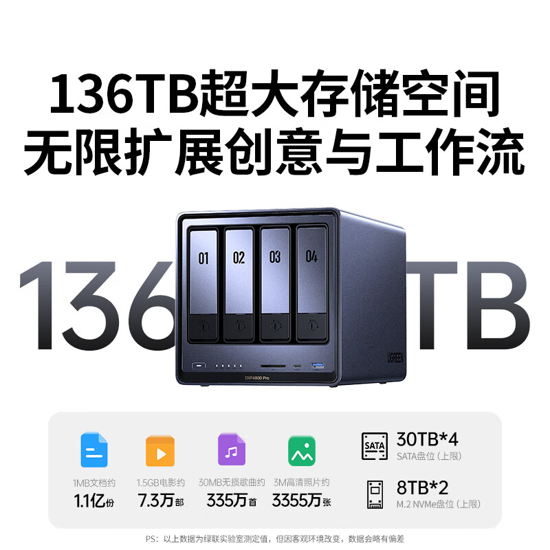 绿联私有云DXP4800 Pro 16G内存 空盘版 四盘位NAS网络存储 个人云硬盘 AI家庭服务器 万兆网口 适用iPhone17