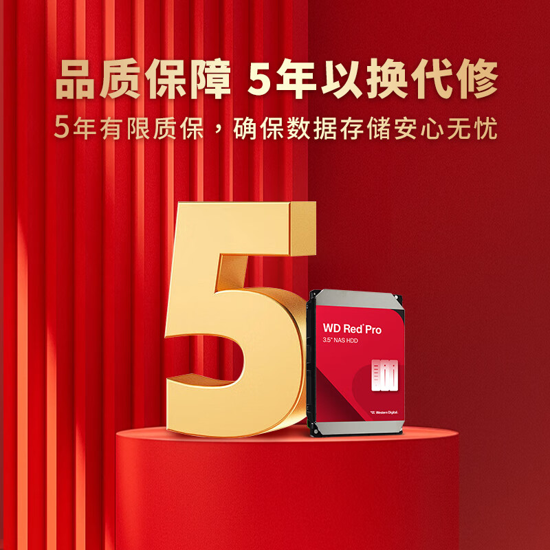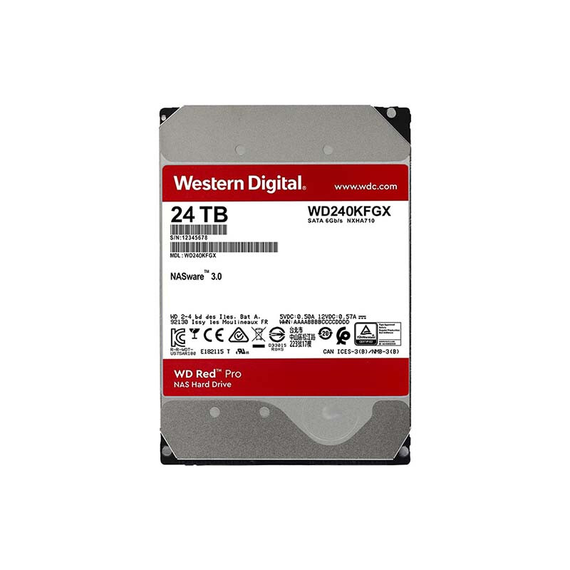 西部数据(WD)NAS机械硬盘 WD Red Pro西数红盘 24TB 7200转512MB SATA CMR垂直 NAS专用硬盘 3.5英寸 WD240KFGX