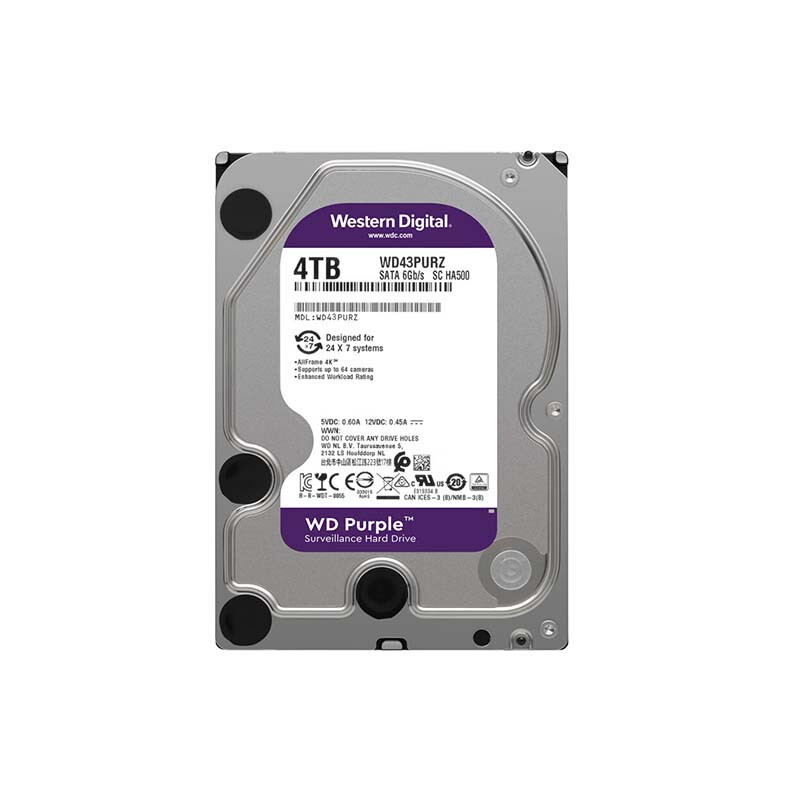 西部数据(WD)4TB 监控级机械硬盘 WD Purple 西数紫盘 SATA 256MB CMR垂直 安防存储 3.5英寸 WD43PURZ