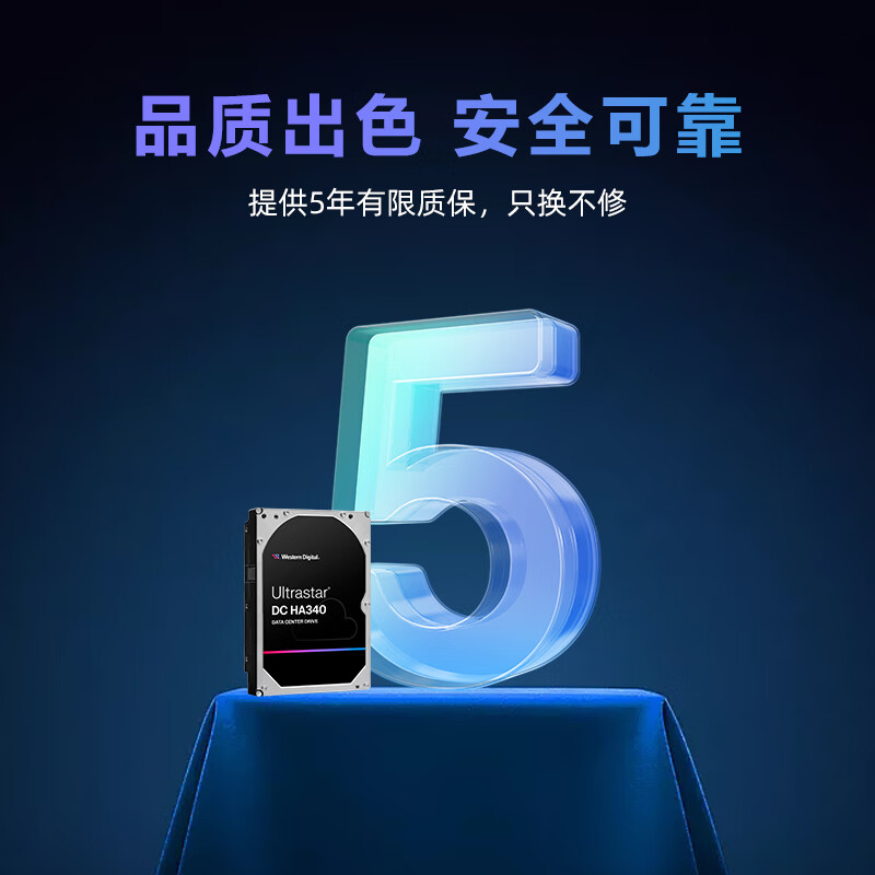 西部数据(WD)10TB 企业级机械硬盘DC HA340 SATA 7200转512MB CMR垂直 服务器硬盘 3.5英寸WUS721210BLE6L4