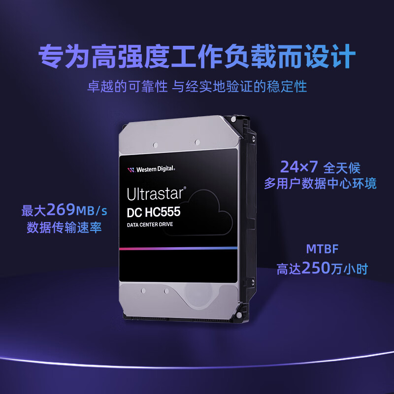 西部数据(WD)18TB企业级氦气机械硬盘HC555 SATA 7200转512MB CMR垂直 服务器硬盘 3.5英寸WUH722018CLE6L4