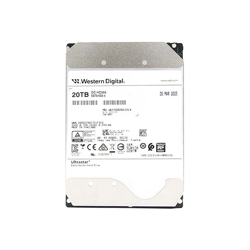 西部数据(WD)20TB企业级氦气机械硬盘HC555 SATA 7200转512MB CMR垂直 服务器硬盘 3.5英寸WUH722020CLE6L4