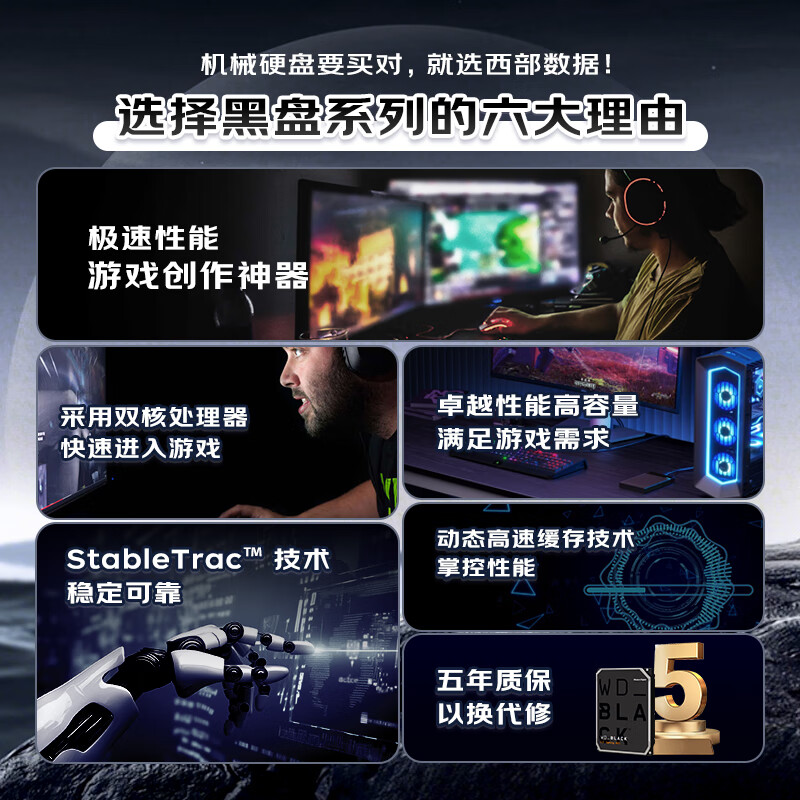 西部数据(WD)6TB 台式游戏机械硬盘 WD_BLACK 西数黑盘 SATA 7200转256MB CMR垂直 3.5英寸WD6004FZBX