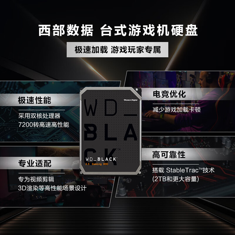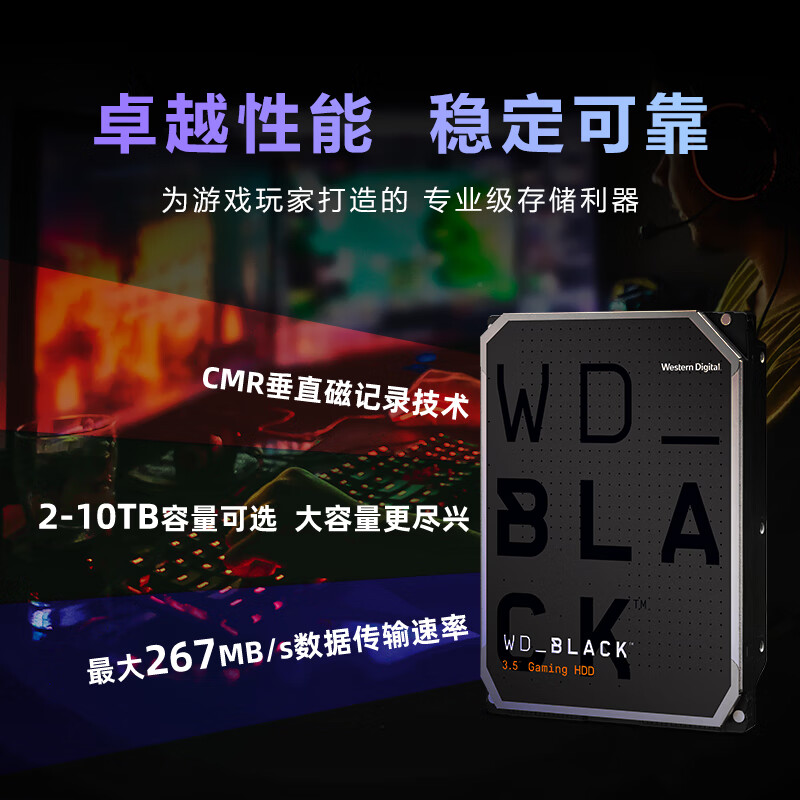 西部数据(WD)10TB 台式游戏机械硬盘 WD_BLACK 西数黑盘 SATA 7200转512MB CMR垂直 3.5英寸WD102FZBX