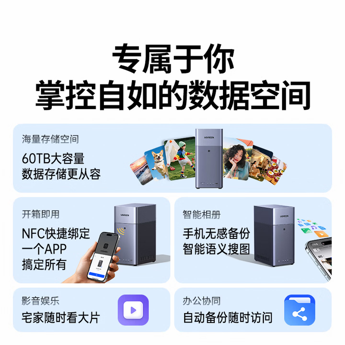 绿联私有云DH2300 8G 灰色 空盘版 双盘位NAS网络存储个人云AI家庭硬盘服务器手机NFC一碰连接相册备份手机平板扩容